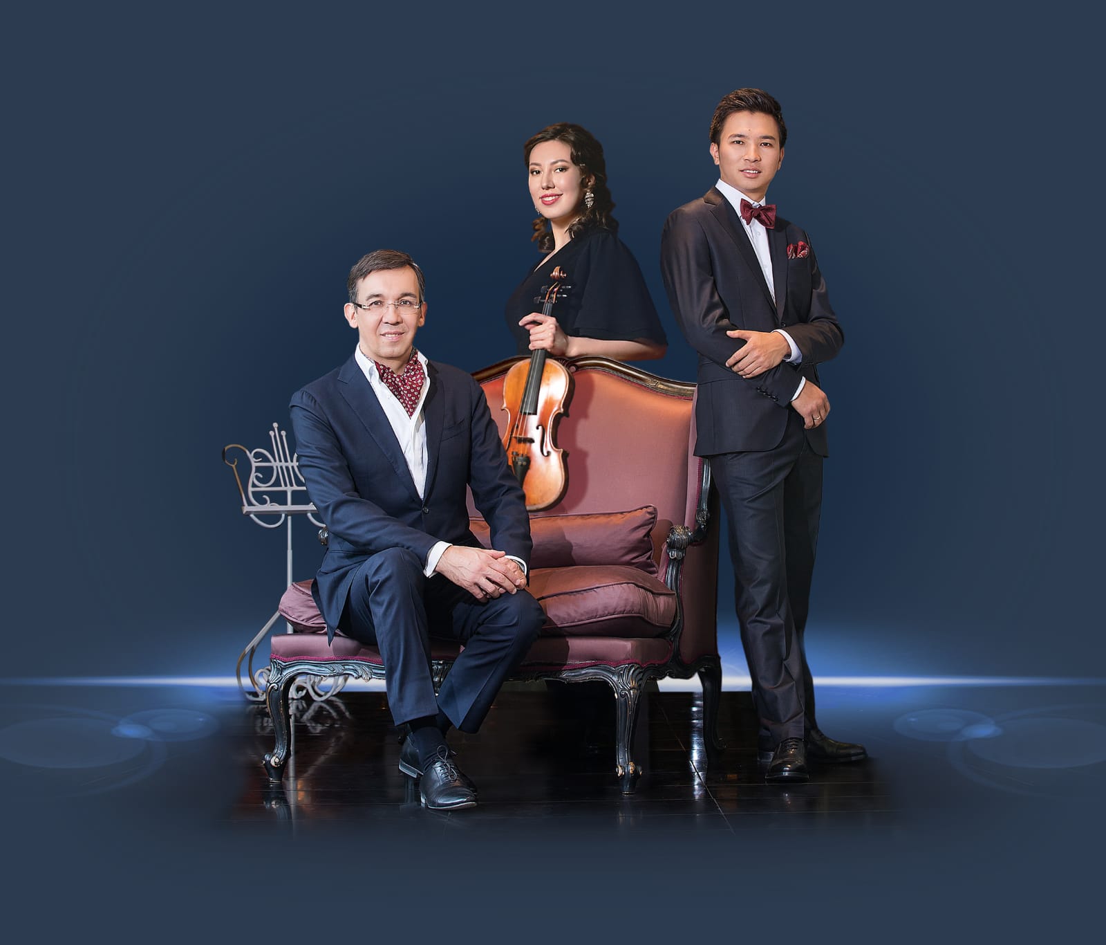 В состав трио входят признанные мастера исполнительского искусства, лауреаты республиканских и международных конкурсов: прославленный пианист, Заслуженный деятель Казахстана, кавалер ордена «Құрмет» Тимур Урманчеев, талантливый виолончелист, лауреат премии Фонда Первого Президента РК – Лидера нации Мурат Нарбеков, лауреат международных конкурсов, скрипачка Шолпан Манкеева.